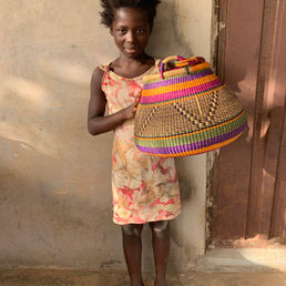Trade Aid is onze handelspartner in Bolgatanga, de meest noordelijke provincie van Ghana. In 2017 zijn wij naar dit noordelijkste puntje van Ghana gereisd op zoek naar de makers van deze manden. De manden makers wonen in de dorpen rondom Bolgatanga en zijn niet georganiseerd. Een aardig klusje om de juiste distributie kanalen te vinden. TradeAID (WFTO lid) heeft ons hiervoor de helpende hand geboden. De Bolga mand is een traditioneel, handgemaakt product. Hat assortiment varieert van zeer kleurrijke tot naturelle manden, shoppers, wasmanden, hondenmanden en baby Mozes wiegjes, allen gemaakt van olifantsgras. Het vlechten van de manden wordt gedaan door de vrouwen. Het vlechten van één mand duurt 5-6 dagen. Als Fairtrade bedrijf zorgen wij voor continuïteit van inkomen en een eerlijke betaling aan de makers van deze prachtige manden. Als de mand uit vorm raakt kunt u deze vochtig maken en weer in model brengen.